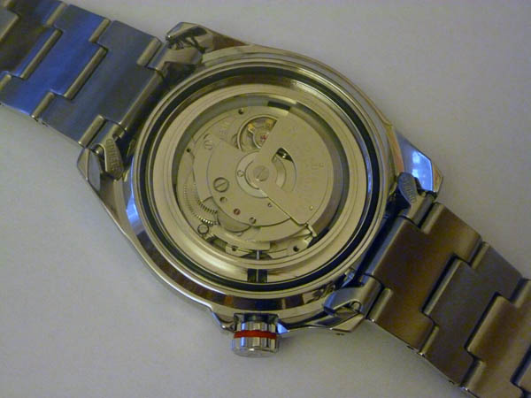 Сначала о том, что не понравилось. В первую очередь не понравились крайние линки браслета – штамповка. У меня на Seiko 5 литые, что мешало сделать так же – не пойму. Не понравилось, как болтается цифер если крутить либо отщелкивать заводную головку: циферблат реально внутри болтается, выглядит это просто отвратительно. Не понравился микролюфт безеля (в районе 1/3 минуты), то есть после установки на необходимом делении его можно на 1\3 минуты повернуть назад, на моем Неомонстре такого нет. Очень сложно попасть на резьбу чтобы закрутить заводную головку. Если остановить секундную стрелку и покрутить время назад – она очень неприятно дергается туда-сюда в позиционные районы нескольких соседних секунд (не знаю, правда, можно ли так делать). Механизм и задняя крышка выглядят довольно бедненько - но это не столь важно.