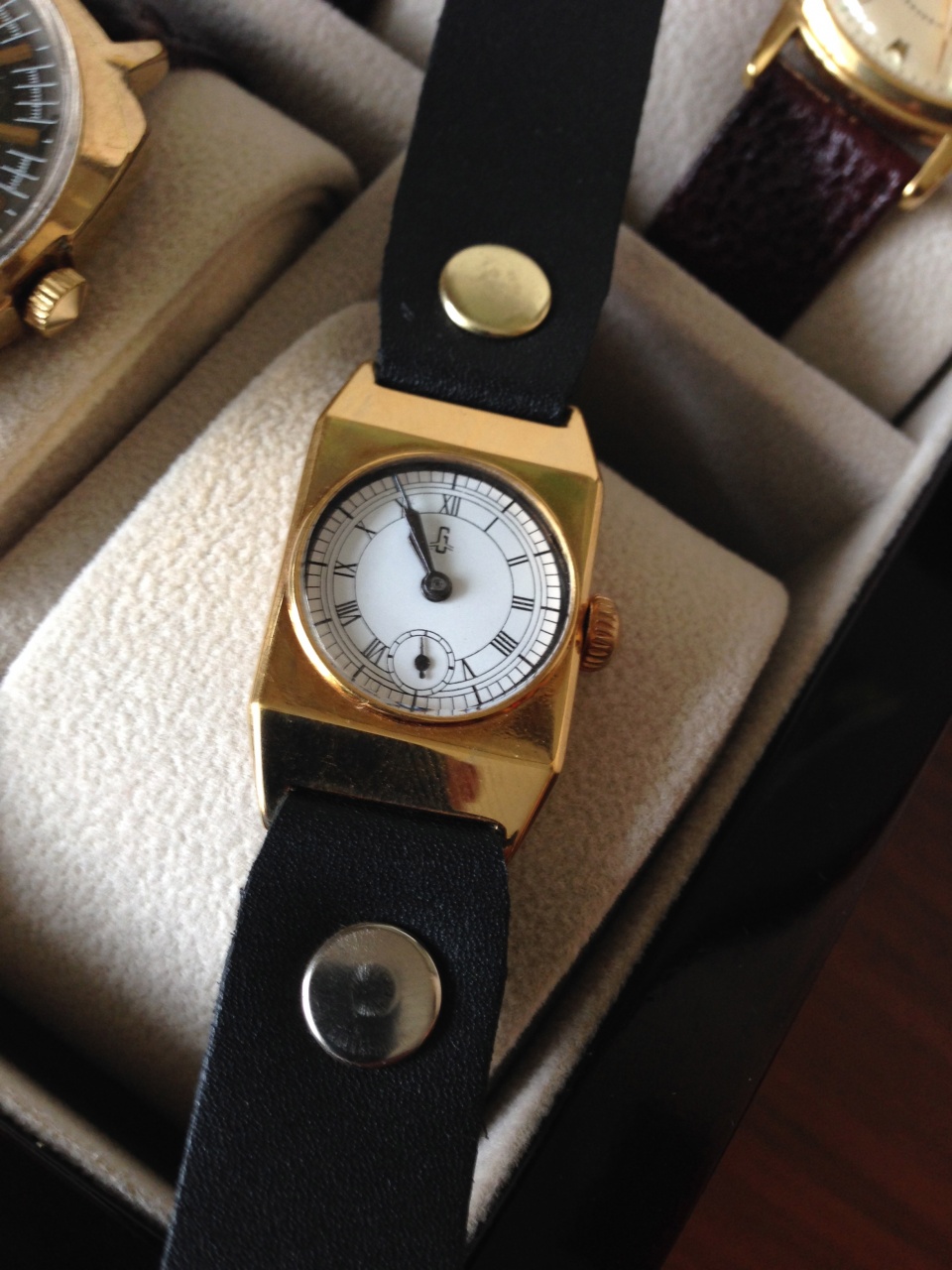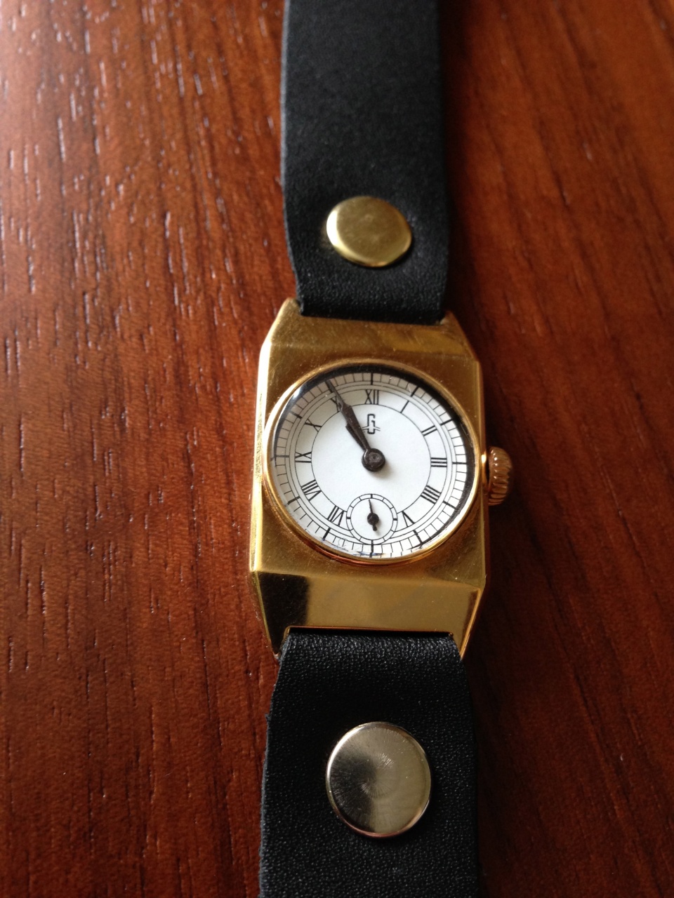 Итак, показываю часы предположительно 1936 г., куплены мной здесь в России у реставратора. По информации от продавца это марка UFAG (Glashutte) с механизмом UROFA cal.58 на 15 камнях. Часики миниатюрные, по сегодняшним меркам больше женские. Корпус как шкатулка, легко раскрывается руками (точнее, ногтями), внутри механизм ни на чем не закрепленный, только на валу заводной головки, которая входит в боковые пазы корпуса. Покрытие - накатка из золотой фольги (goldplaque) толщиной 50 микрон. Прекрасное рабочее состояние, точность хода в пределах 10 сек/сутки, завода хватает примерно на 25-28 часов.