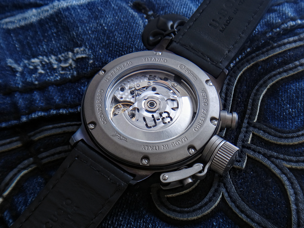 Качество изготовления корпуса и отделки деталей выполнено на достойном уровне, механизмы проверены временем, просты в обслуживании и надежны. U-boat традиционно изготавливаются в Италии, с популярными швейцарскими механизмами внутри. В этой модели установлен добротный и всем хорошо известный калибр ETA/Valjoux 7750.