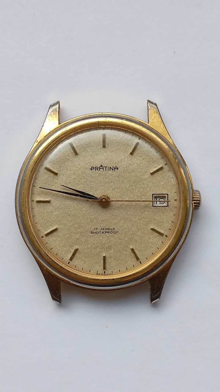 Знакомый восточный немец подарил старые часы Pratina (см. фото 1). Ну, не совсем старые, времен ГДР, 70-е или 80-е. Сам он не помнит даже приблизительно, когда купил, но сказал, что больше не нужны. На удивление часы оказались в неплохом состоянии, следов коррозии металла или осыпания краски немного. Причем немец сказал, что они вроде испорчены, но когда он покрутил ЗГ часы пошли и довольно стабильно.