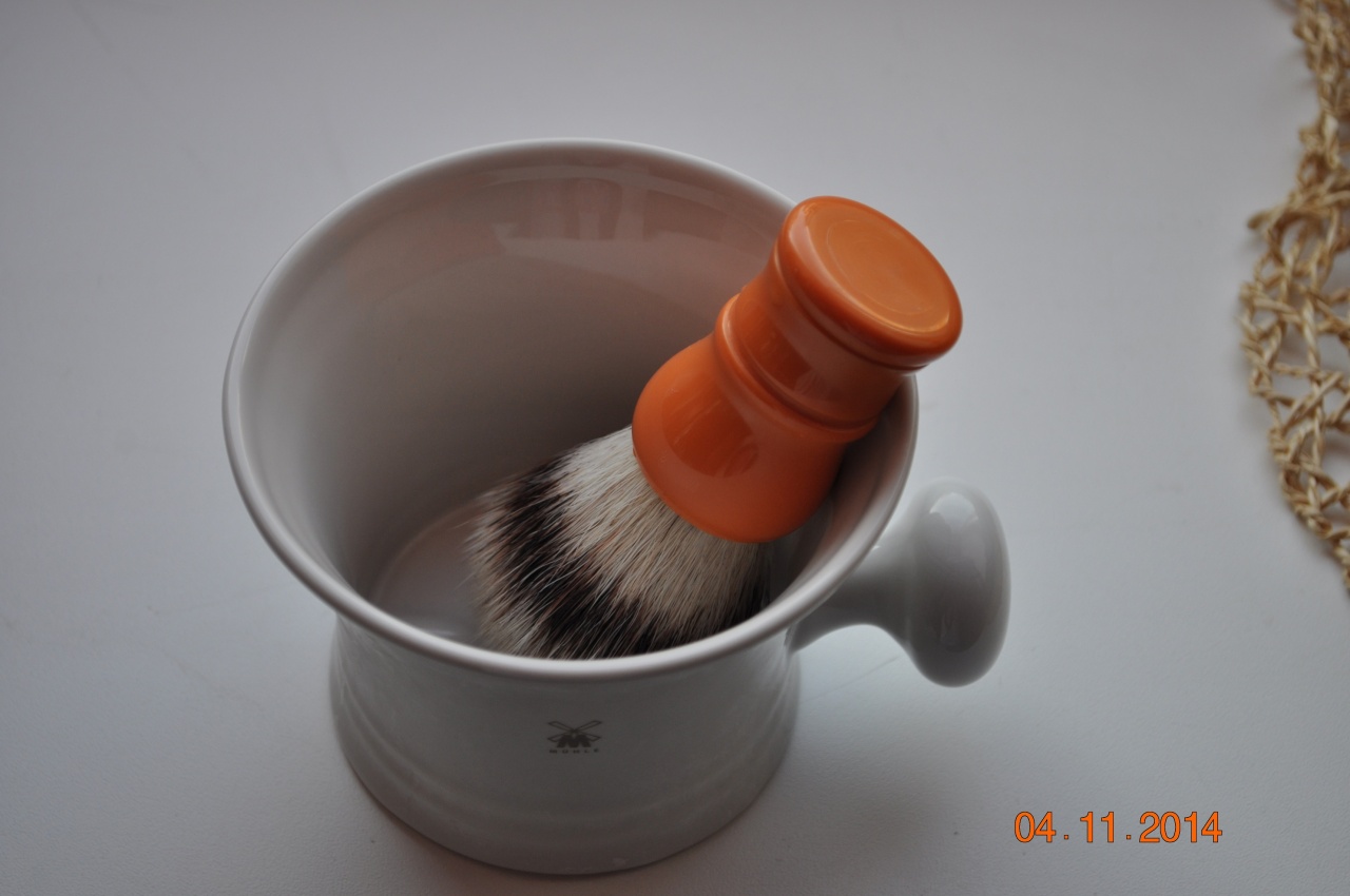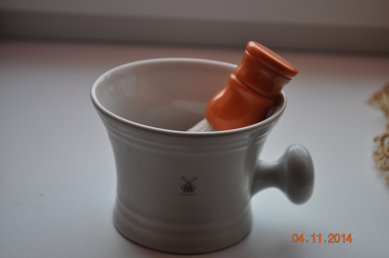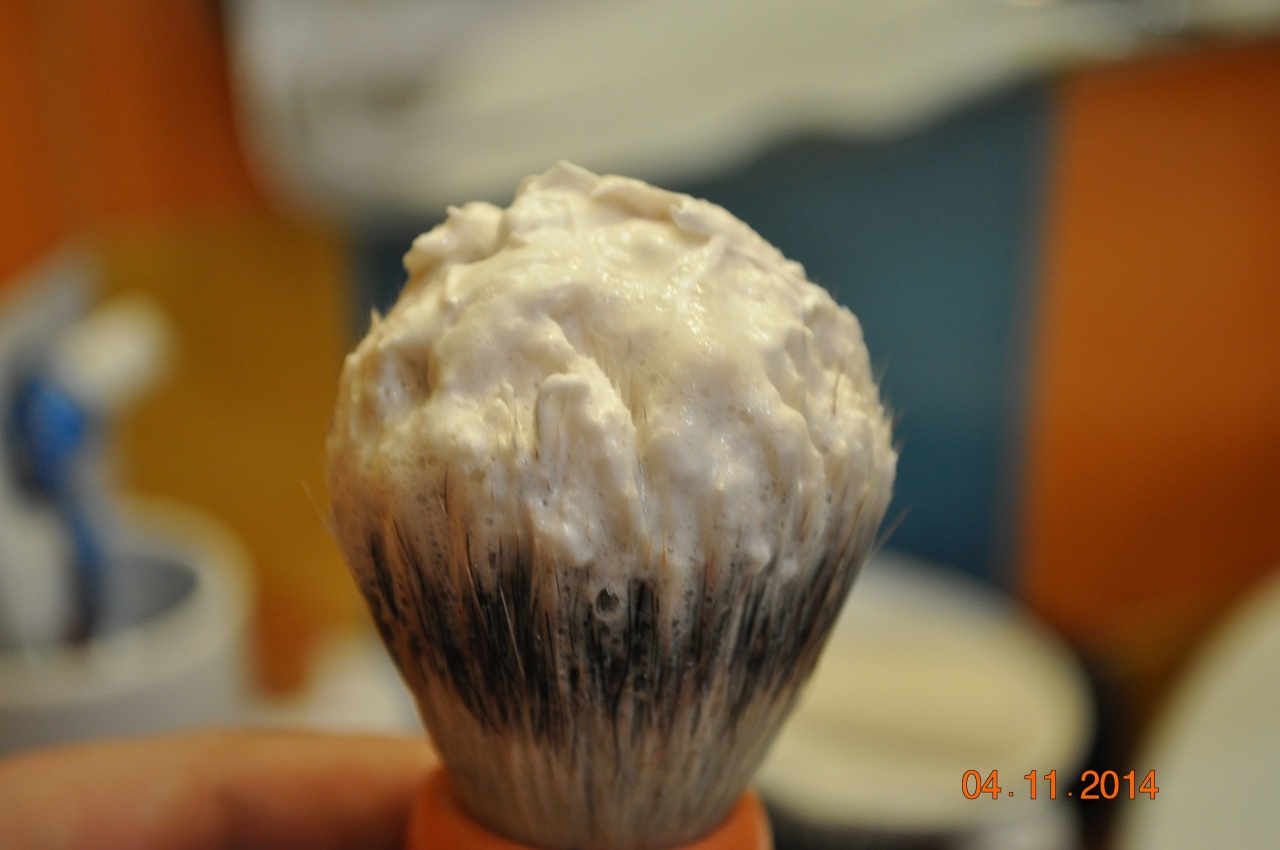 Далее усиленная работа помазком в кружке. Взбивание заняло не очень много времени, но свинкой все таки выходило побыстрее, про барсука не скажу, он у меня для лица, миска подходящая ему размерами, пока только в планах. Результат напряженной работы правой руки на фото.