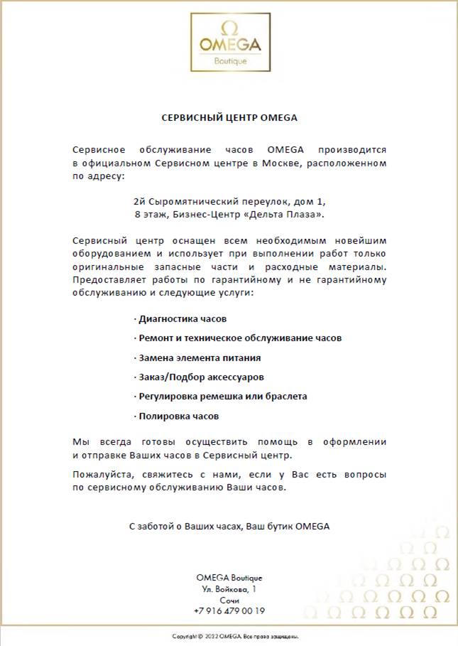 Гарантия и обслуживание 2022. Официальная позиция Омега.