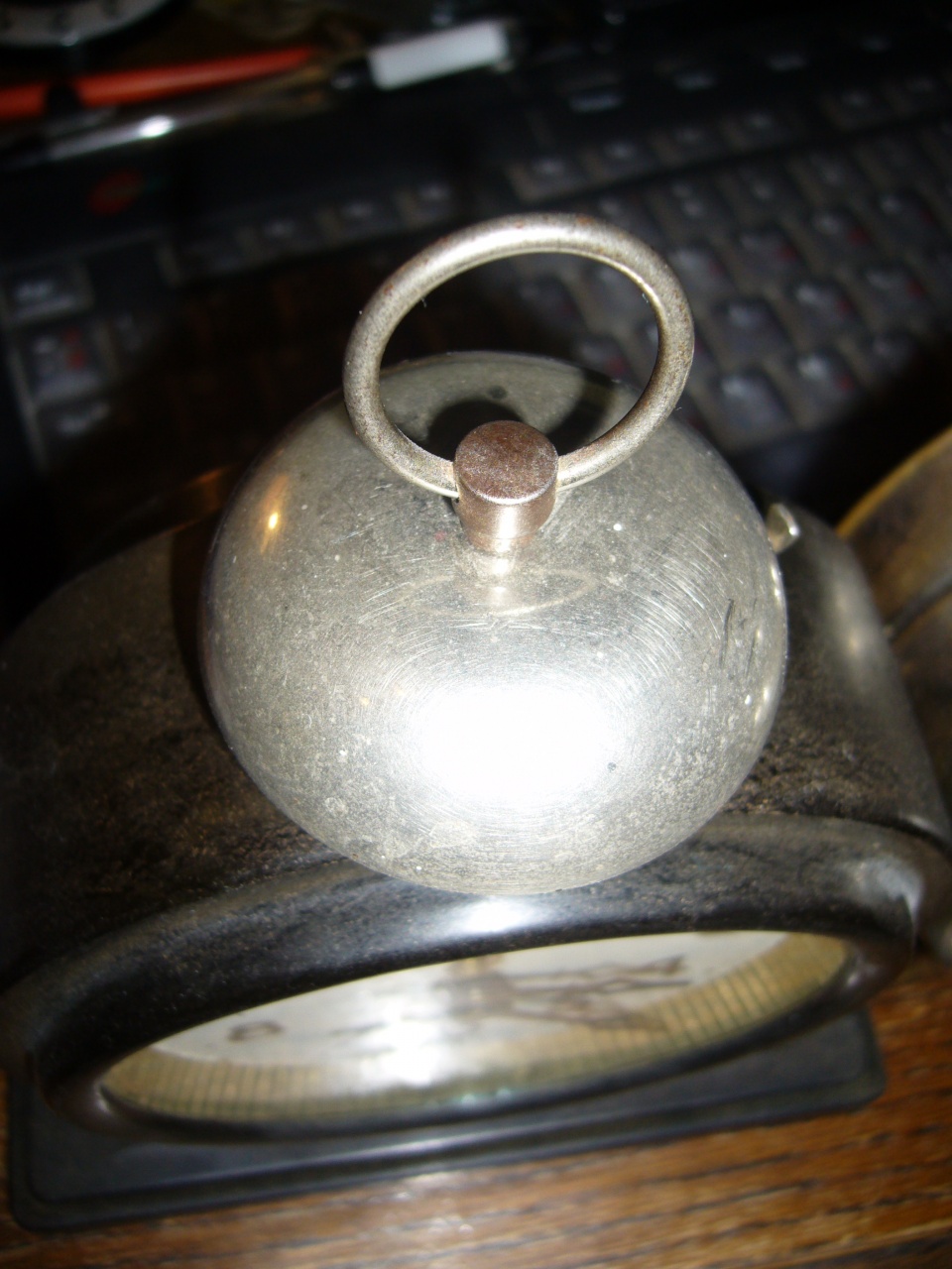 А разве не могло быть так , что звонки и кольца в разное время ставили разные - например , покупали комплектующие у другого часового завода ? Тот второй будильник на Вашем фото ведь тоже советский ? Диаметр звонка на моём экземпляре - 60 мм . И посмотрите , пожалуйста, родной ли тут механизм - в смысле колёсиков , пружинок ? На циферблате тоже дата выпуска , как я понял - Х-50 г. Есть ли ещё экземпляр 50 -го года у кого-нибудь - чтобы определить , родной ли ему звонок или был уже заменён ? Что скажете ?