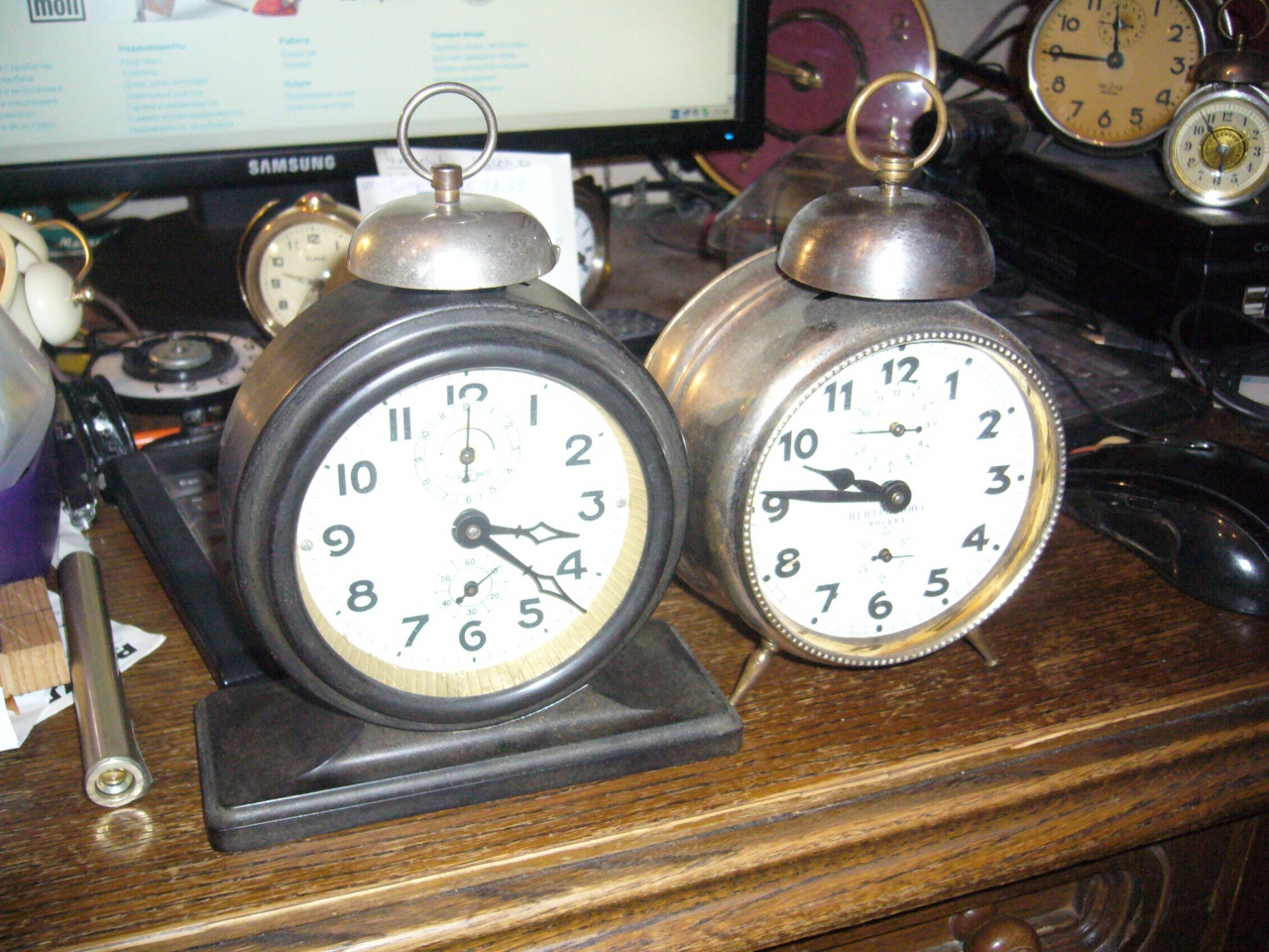 А разве не могло быть так , что звонки и кольца в разное время ставили разные - например , покупали комплектующие у другого часового завода ? Тот второй будильник на Вашем фото ведь тоже советский ? Диаметр звонка на моём экземпляре - 60 мм . И посмотрите , пожалуйста, родной ли тут механизм - в смысле колёсиков , пружинок ? На циферблате тоже дата выпуска , как я понял - Х-50 г. Есть ли ещё экземпляр 50 -го года у кого-нибудь - чтобы определить , родной ли ему звонок или был уже заменён ? Что скажете ?