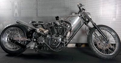 Новый мотоцикл от Ивана Арпа полностью ручной работы и, естественно, стоит он очень дорого. Это новая "готическая" машина больше напоминает машину будущего. Некоторые видимые винты и детали байка выполнены в черном цвете, придавая мотоциклу более уникальный вид.