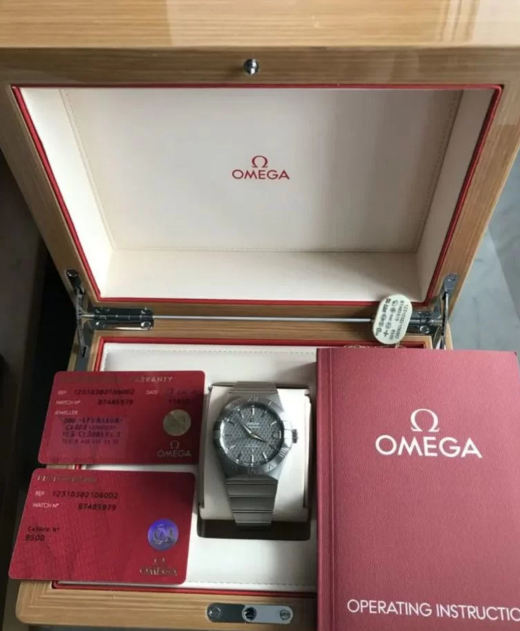 - Калибр: Omega 8500 (запас хода 60 часов)