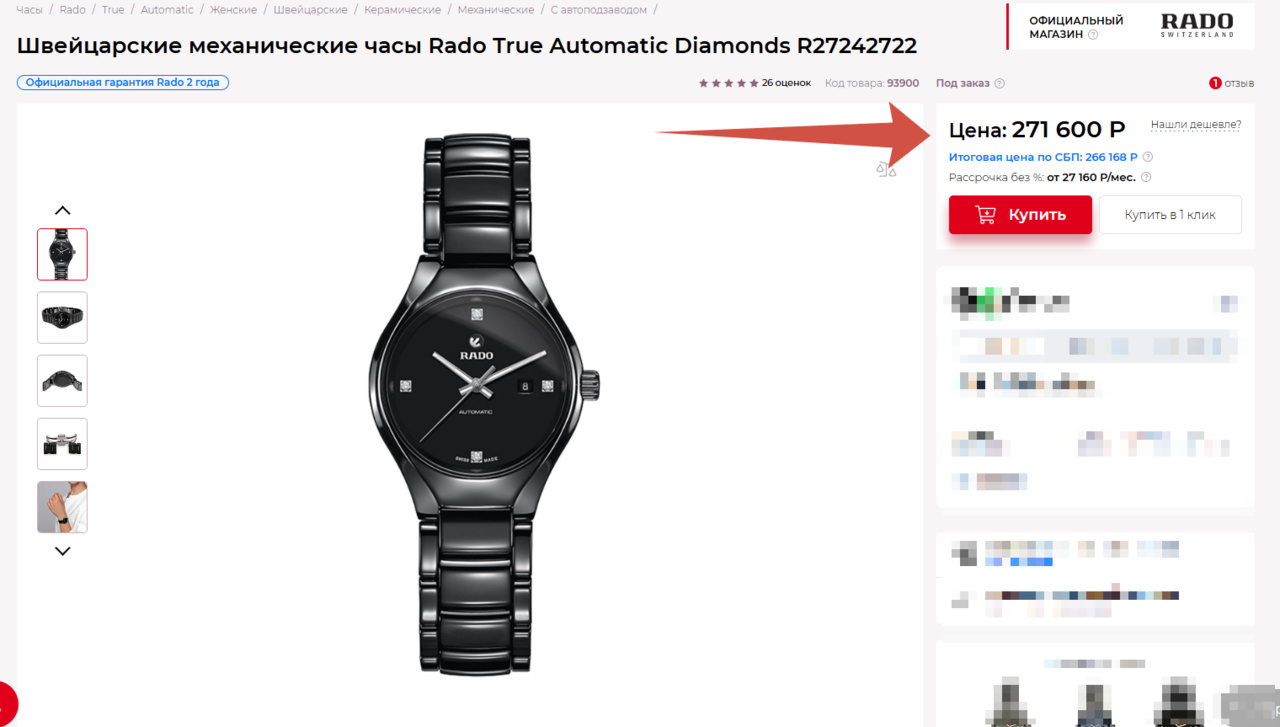 [Женские] RADO True Auto R27242722. Механика / Черная керамика / 4 бриллианта / d=30mm - Часовой форум Watch.ru