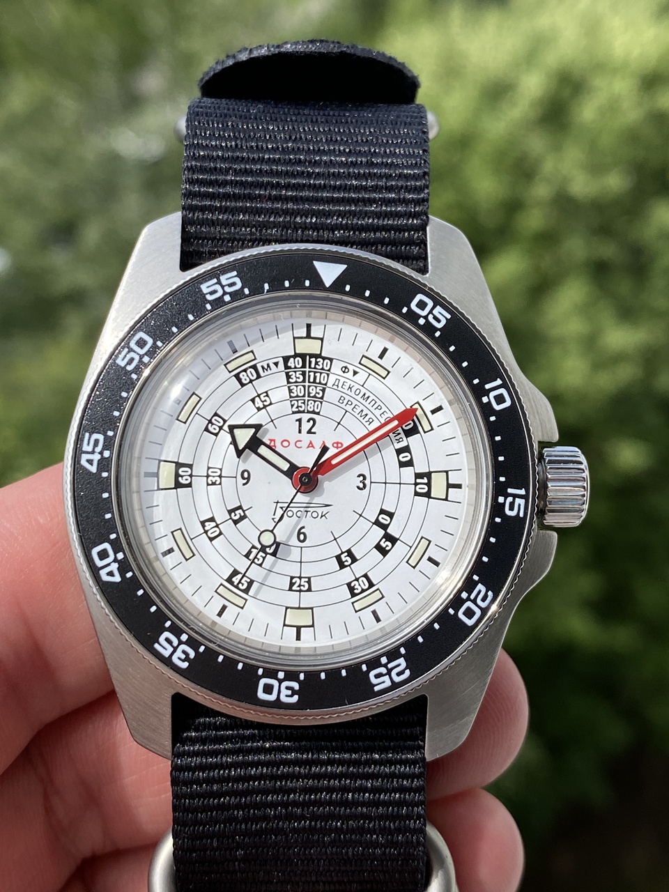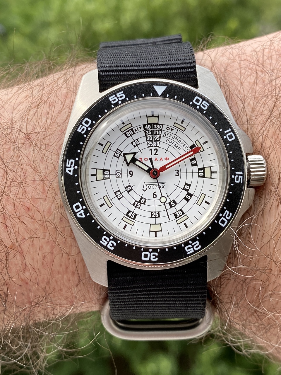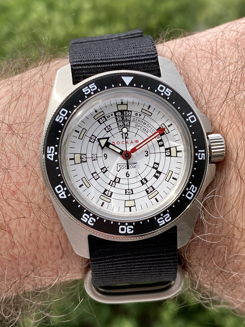 Часы получил. Шикарные! Организаторам, всем причастным огромная благодарность! Новый корпус понравился, подходит по тематике. Необычный дизайн циферблата, квадраты с люмом, шкала декомпрессии, в общем для настоящих водолазов и любителей подводного плавания.