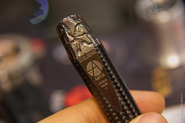 Никаких проблем, я прилетел с ними в Россию и ничего не случилось. На каждые такие часы покупателю выдается сертификат. В нем написано, что патроны в Son of the Gun абсолютно безвредны. Там нет никакого пороха. Но, я расскажу историю на эту тему. Я сделал ручку. У меня их много, разные сумасшедшие ручки, но эта… В общем, она сделана из большого увесистого патрона. С таким патроном я однажды оказался в Катаре и арабы упекли меня за решетку. Я забыл ручку в сумке, а они решили, что поймали террориста.
