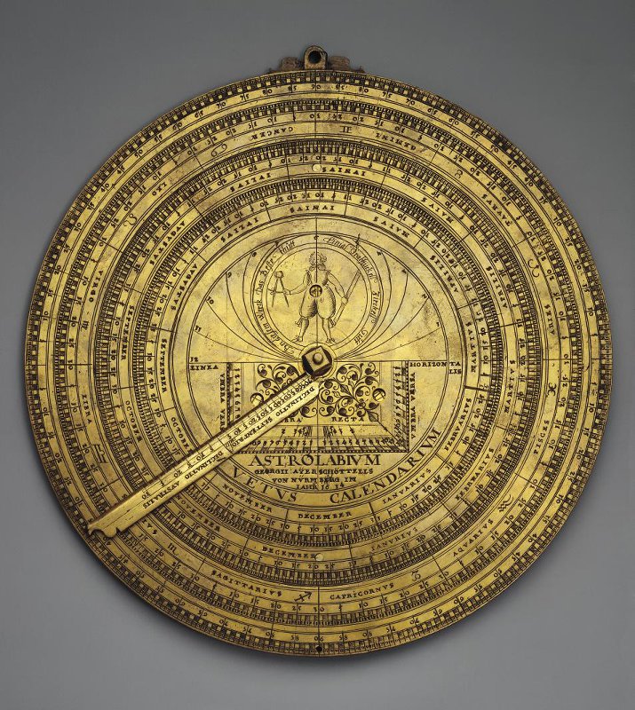 2. "... зодиакальная и две календарных шкалы. Наличие двух календарных шкал объясняется тем, что Пруссия перешла на новый стиль летоисчисления незадолго до изготовления астролябии, в 1610 г., но Нюрнберг относился к протестантской унии, где новый календарь был принят только в 1700 г."